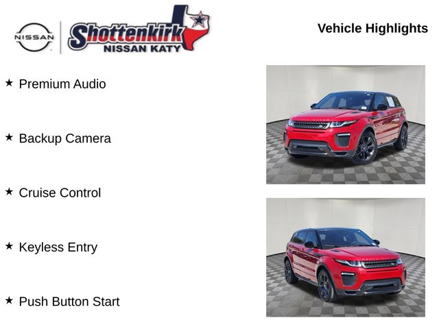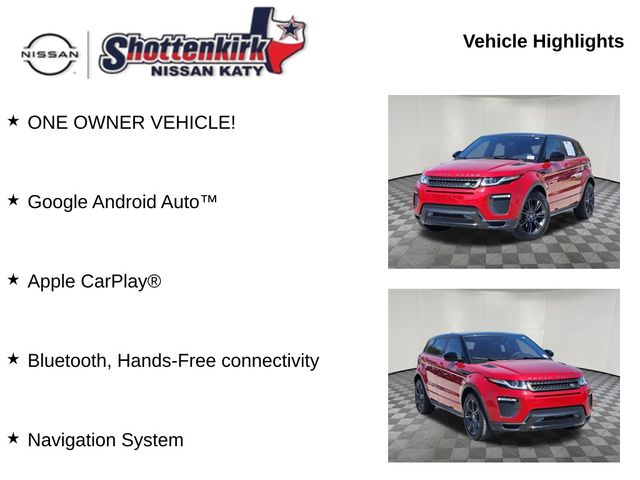 This exceptional Range Rover Evoque Landmark Edition is the perfect blend of luxury, capability, and technology. We invite you to experience it for yourself by scheduling a VIP appointment at Shottenkirk Nissan Katy, your certified Nissan Dealer in Katy that services Katy, Cinco Ranch, Pecan Grove, Richmond, Rosenberg, Jersey Village, Orchard,Wallis, Simonton, Fulshear, Brookshire, Sealy, Columbus, Pattison, Cypress, Hockley, Waller, Prairie View, Hempstead, Bellville, and all areas surrounding Houston. Our finance experts are ready to help you secure the perfect loan or lease to get you behind the wheel of this remarkable vehicle. Call us today to schedule your VIP appointment.
