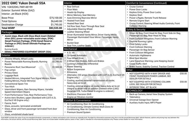 Safety and convenience are also at the forefront, with advanced driver-assist technologies like Automatic Emergency Braking, Forward Collision Alert, and Lane Keep Assist with Lane Departure Warning. The power-retractable assist steps and hands-free power programmable rear liftgate add to the Yukon Denali's exceptional functionality.